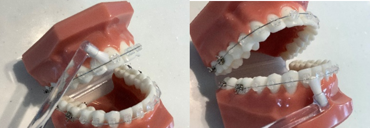 ⇧このように、ワンタグとブラシを使ってブラケットの四隅を磨きます!